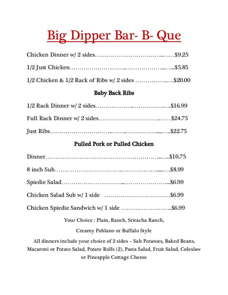 Welcome to Big Dipper BBQ, a vibrant gem nestled in Apalachin, NY, where Mexican flavors meet smoky barbecue perfection. The restaurant's menu offers a delightful fusion, featuring tender meats marinated in bold spices, complemented by savory sides that elevate the dining experience.